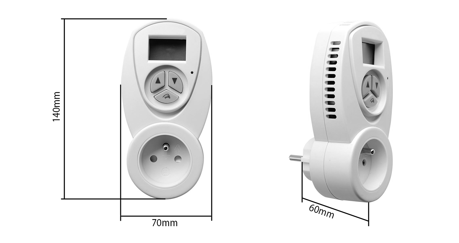 Zásuvkový elektronický termostat s časovým spínačem a protizámrazovou ochranou.