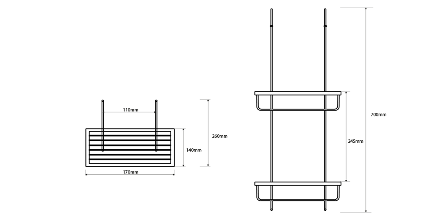 Závěsný držák ručníků na sprchovou zástěnu 600x730x125mm, chrom 1301-09