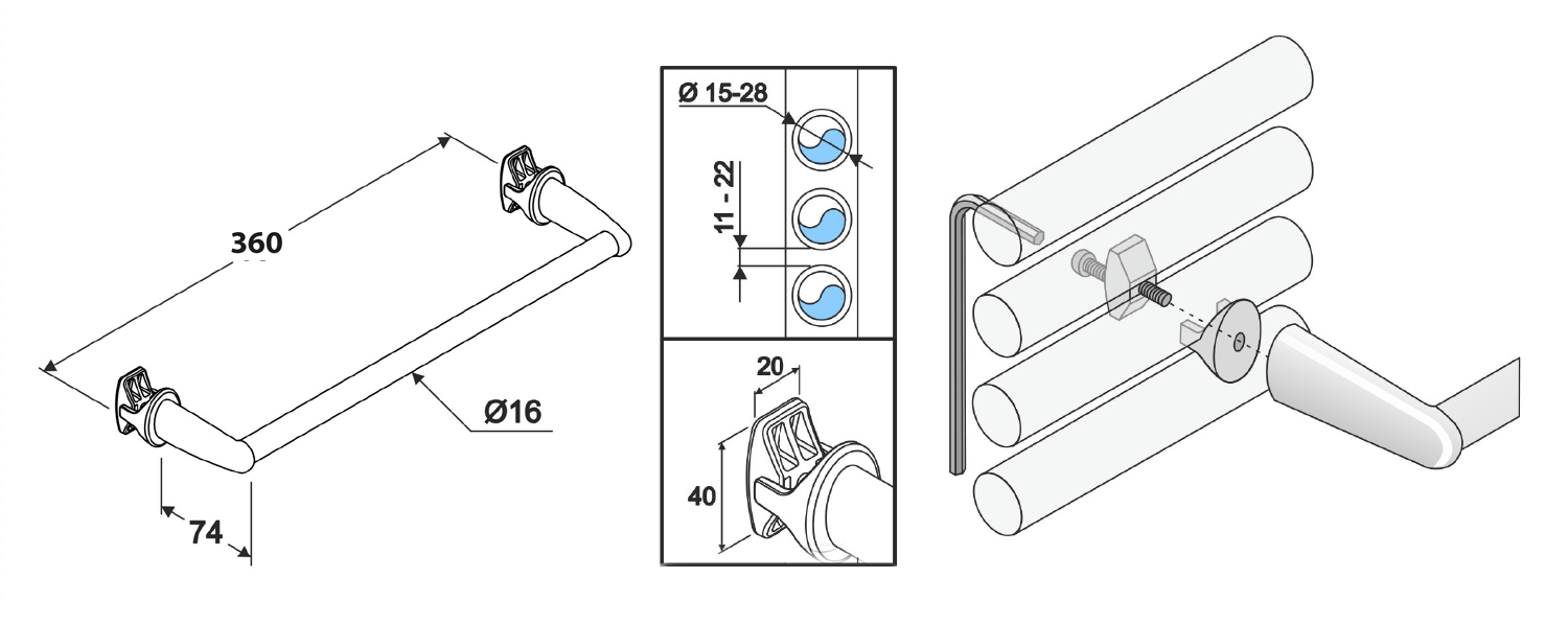 Vhodný pro instalaci na rovná otopná tělesa od šířky 45 cm. Instalace pomocí přiloženého INBUS klíče.