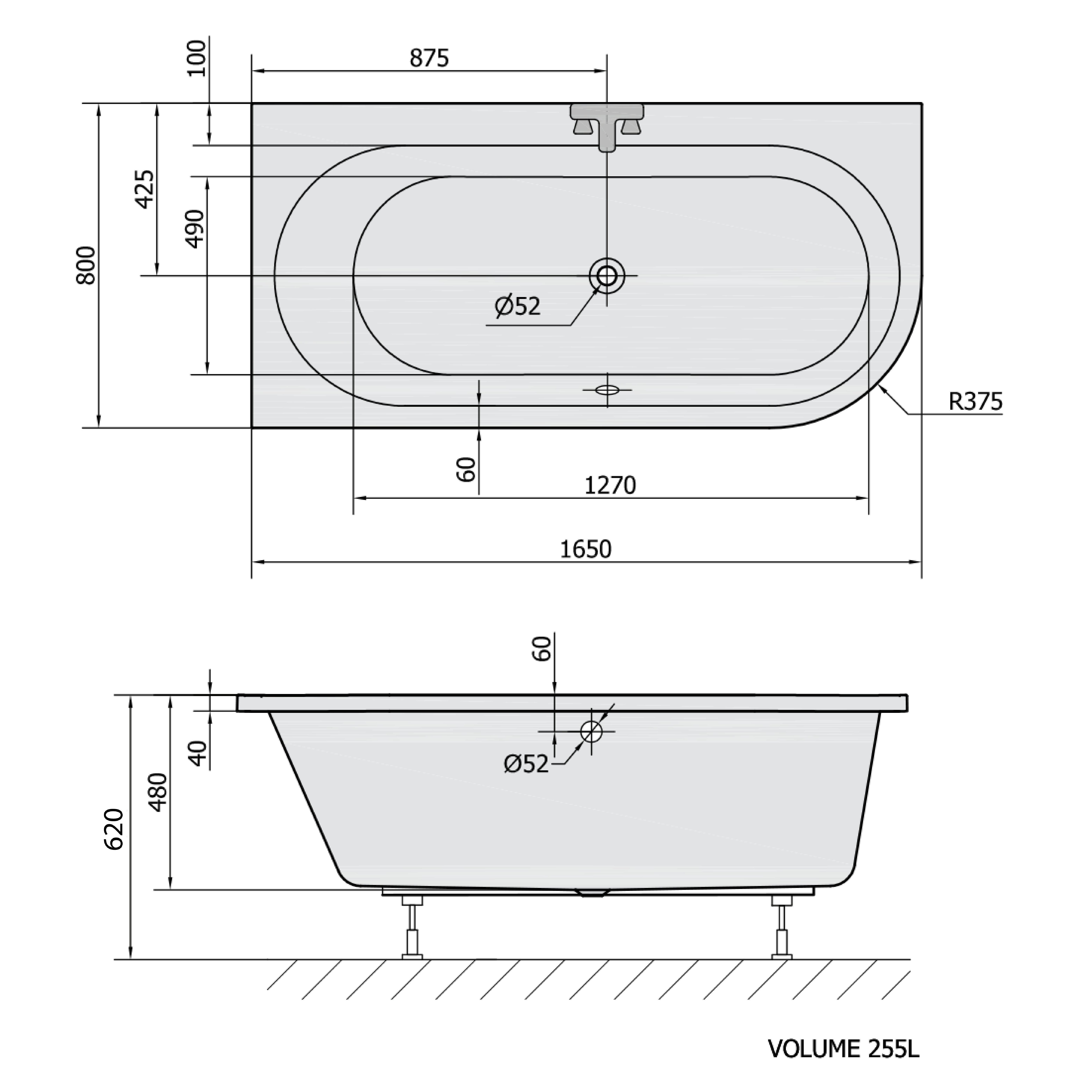 Nosná konstrukce pro asymetrickou vanu 165x80cm FR16580