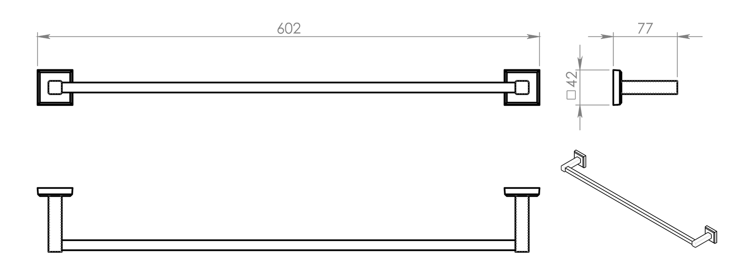 X-SQUARE držák ručníků 600mm, chrom XQ403