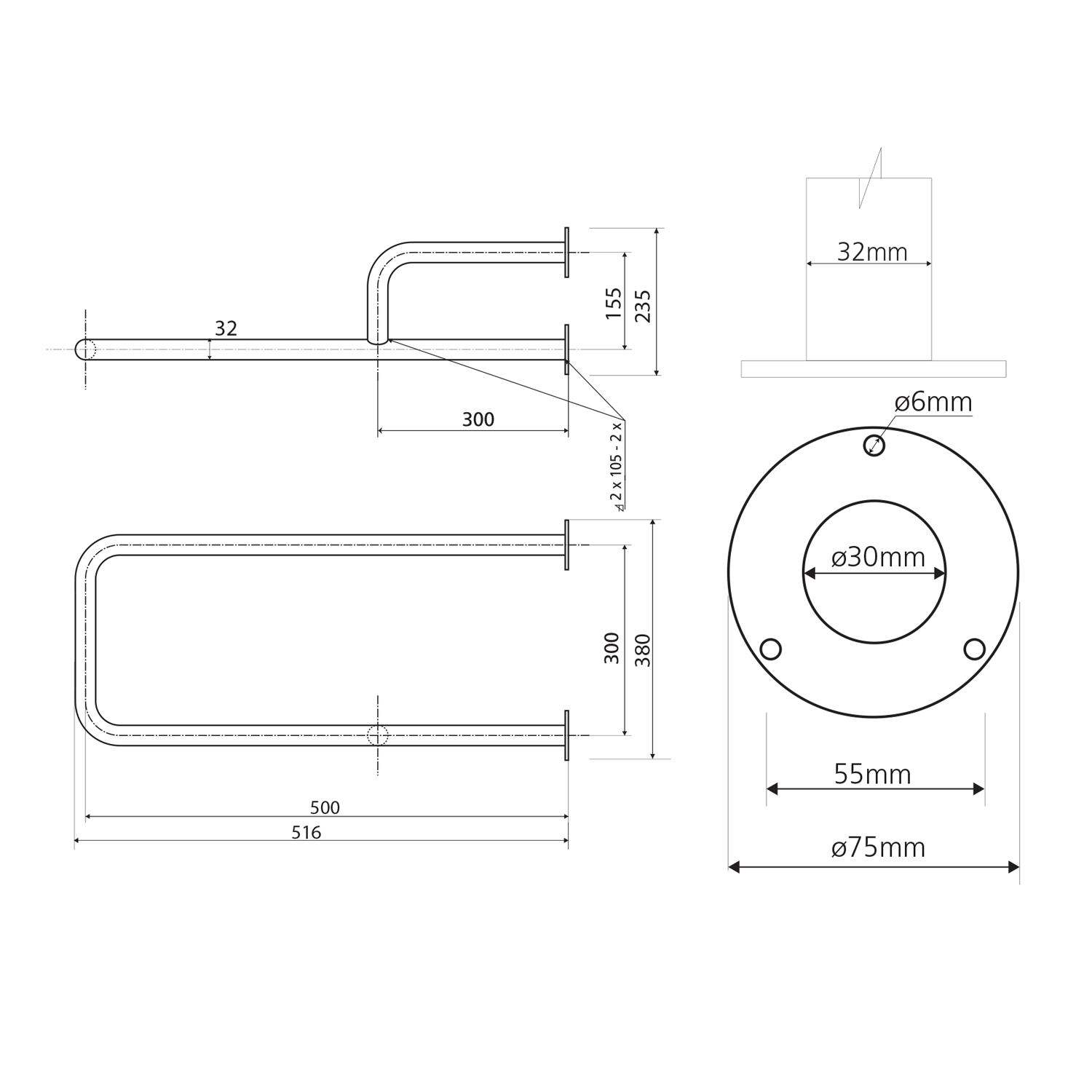 HANDICAP opěrné madlo PRAVÉ 760mm, nerez lesk XH536