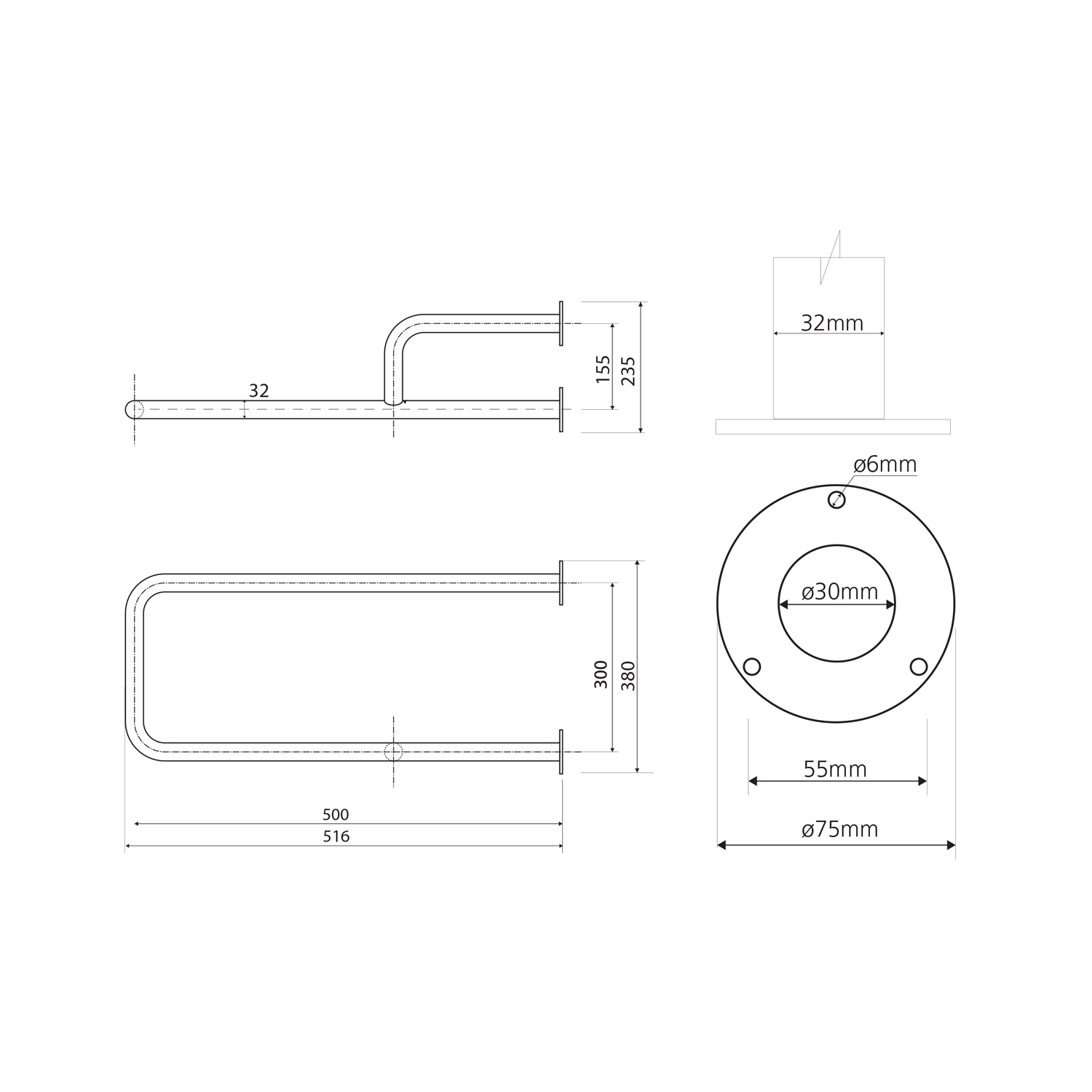 HANDICAP opěrné madlo PRAVÉ 760mm, nerez lesk XH536
