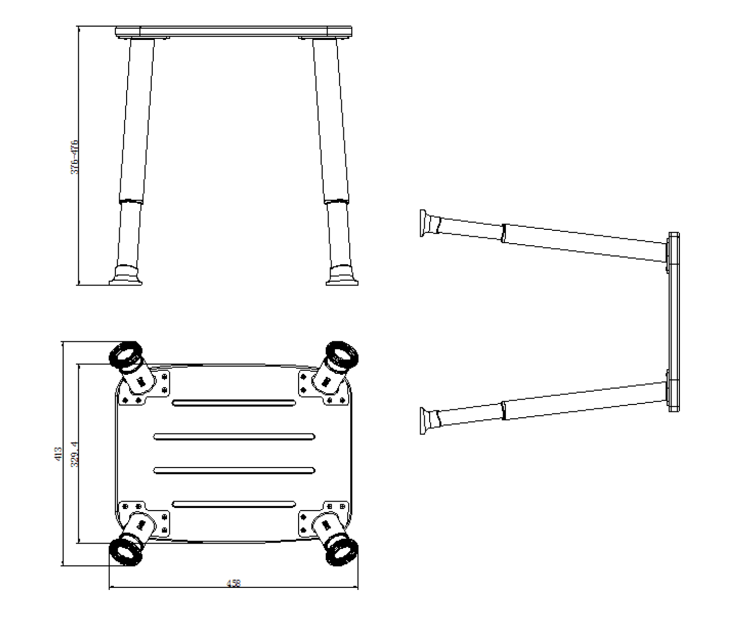 • Výšková nastavitelnost: 376-476 mm