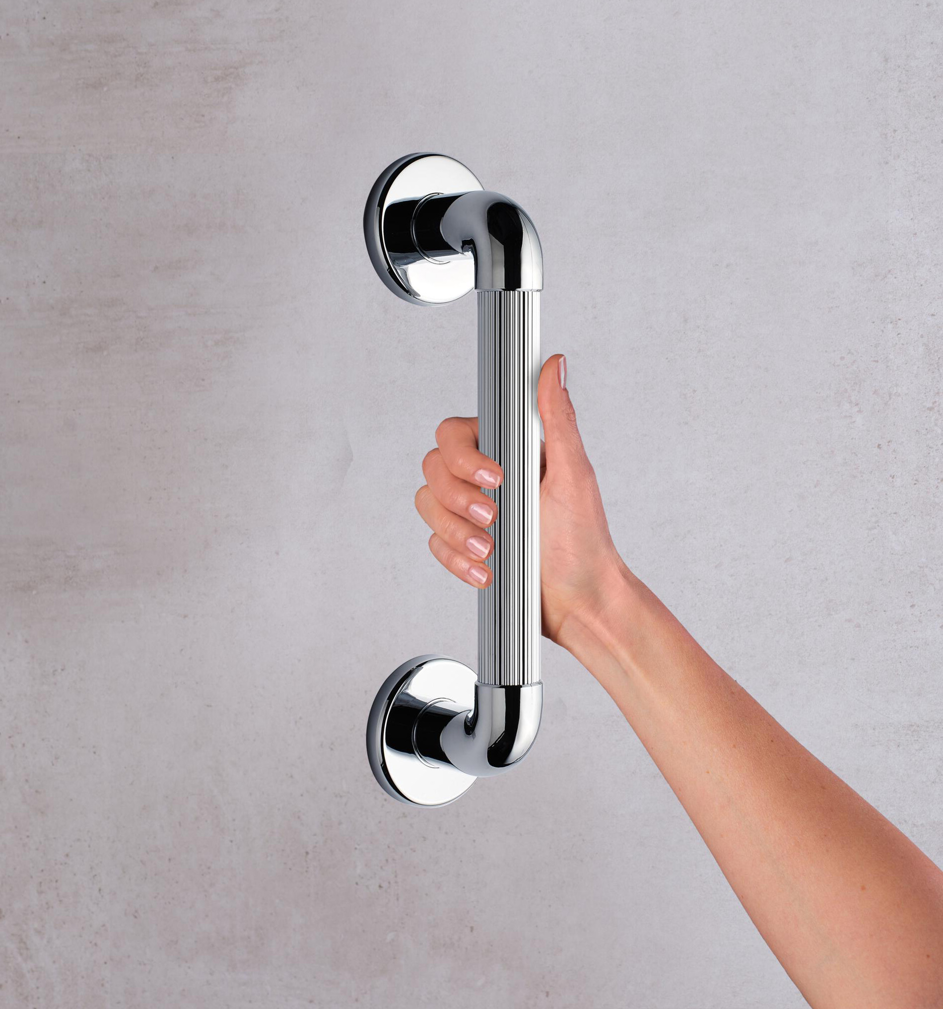 Odolné plastové madlo poskytuje bezpečnou oporu díky drážkám na rukojeti, které poskytují bezpečné uchopení i mokrýma rukama.