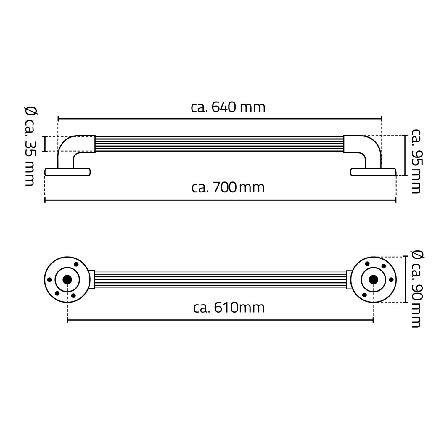 Odolné plastové madlo poskytuje bezpečnou oporu díky drážkám na rukojeti, které poskytují bezpečné uchopení i mokrýma rukama.