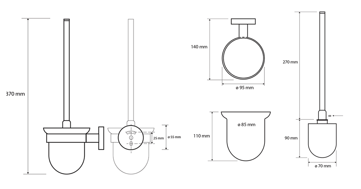 PIRENEI WC štětka závěsná, mléčné sklo, černá mat PI330314
