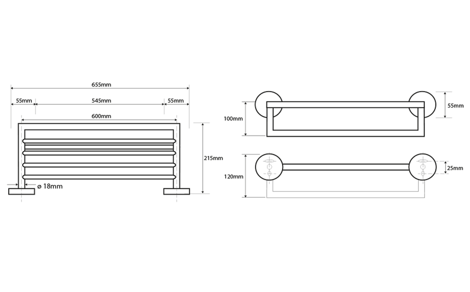 X-ROUND polička na ručníky dvojitá s hrazdou 600x160x225mm, chrom XR416