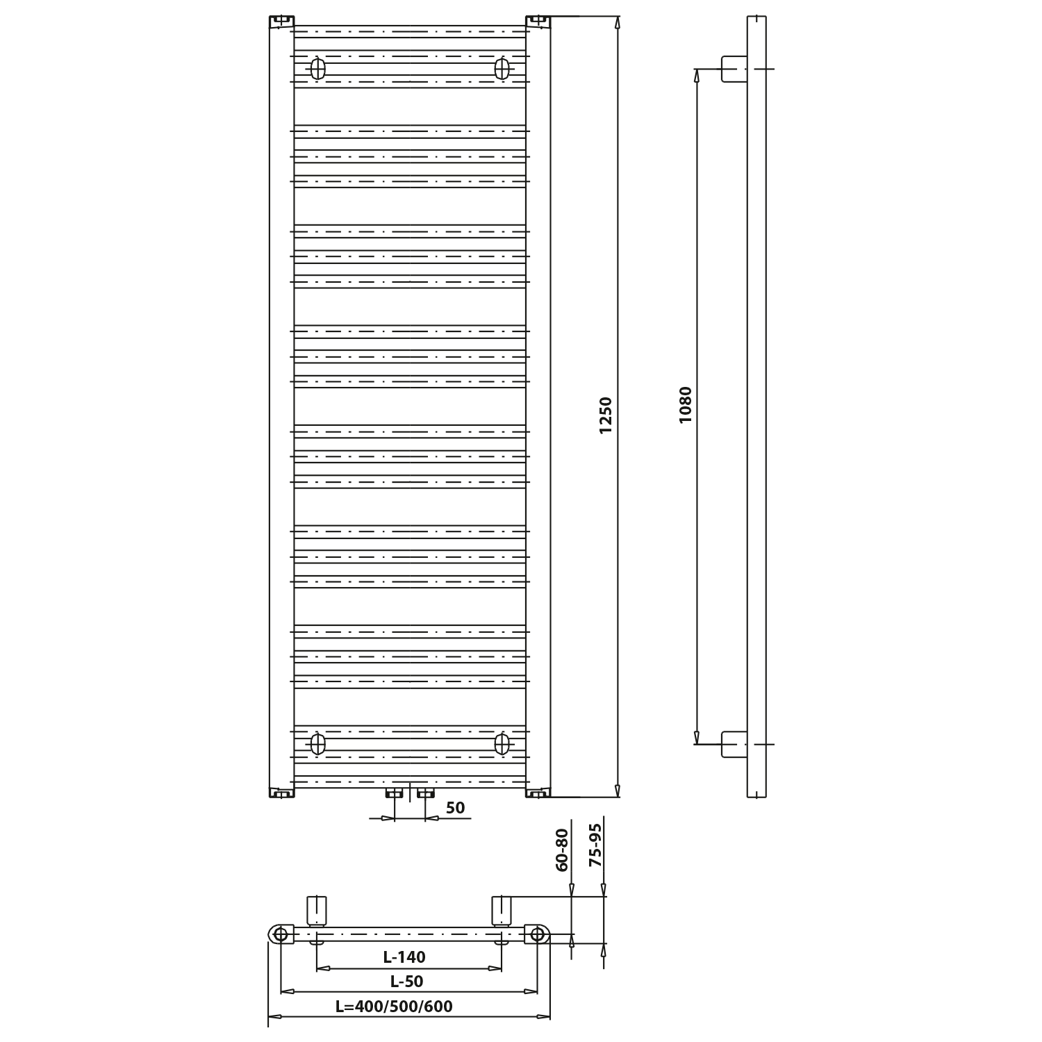Sušák ručníků na otopná tělesa 214x600mm, chrom 1306-09N