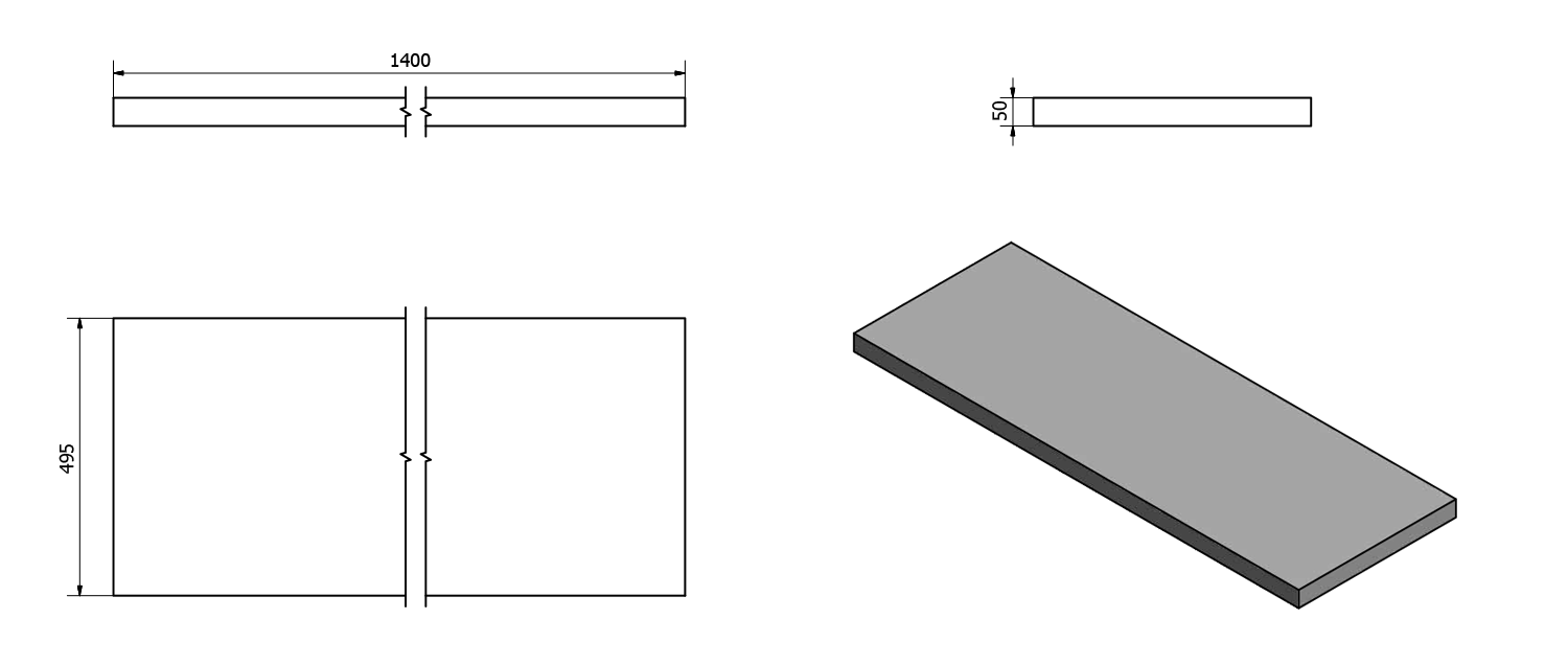 Podpěrná konzole 490x150x20mm, lakovaná ocel, černá mat, 1 ks 30360