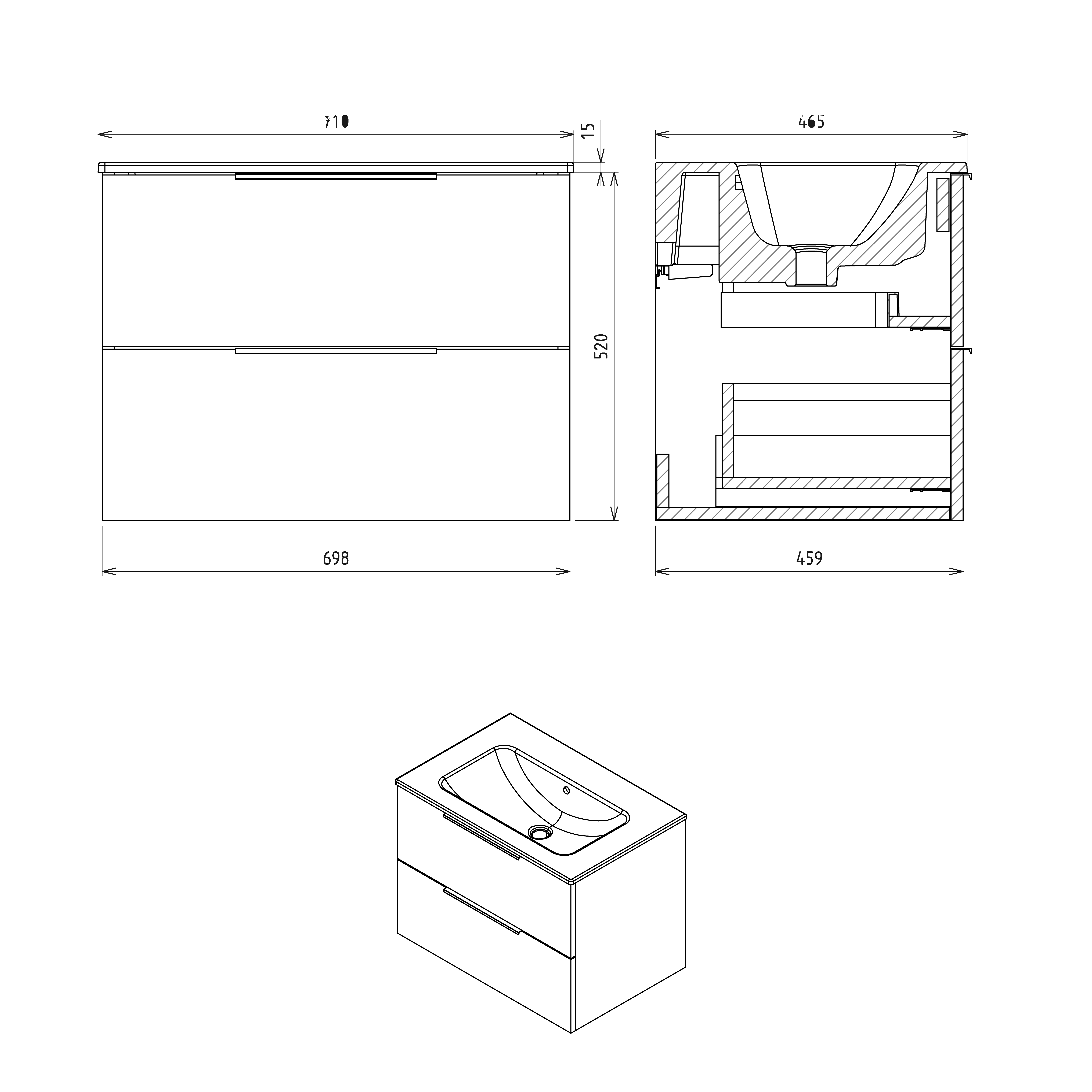 SLIM keramické umyvadlo, nábytkové, 70x46,5cm, bílá 1601-70