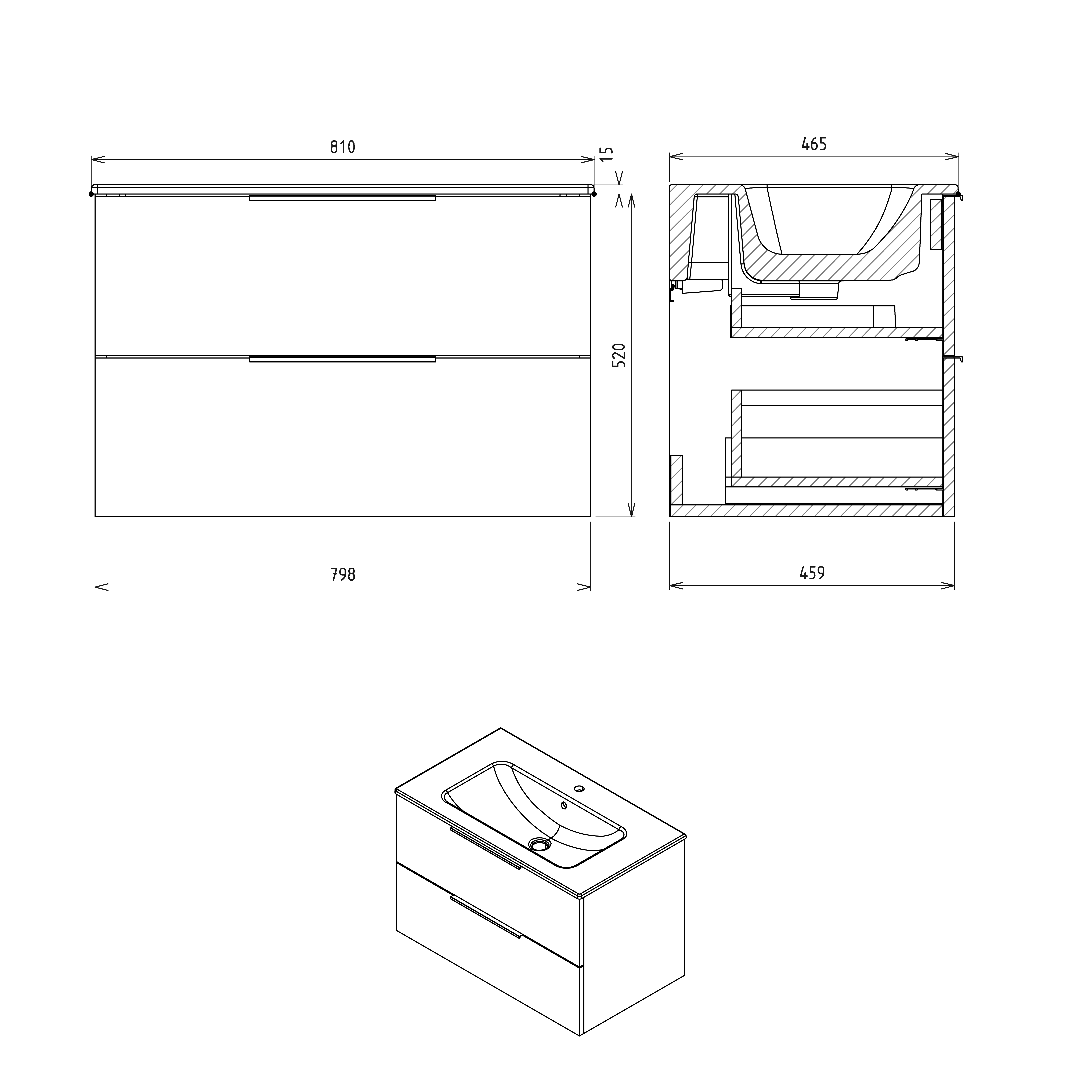 SLIM keramické umyvadlo, nábytkové, 80x46,5cm, bílá 1601-80