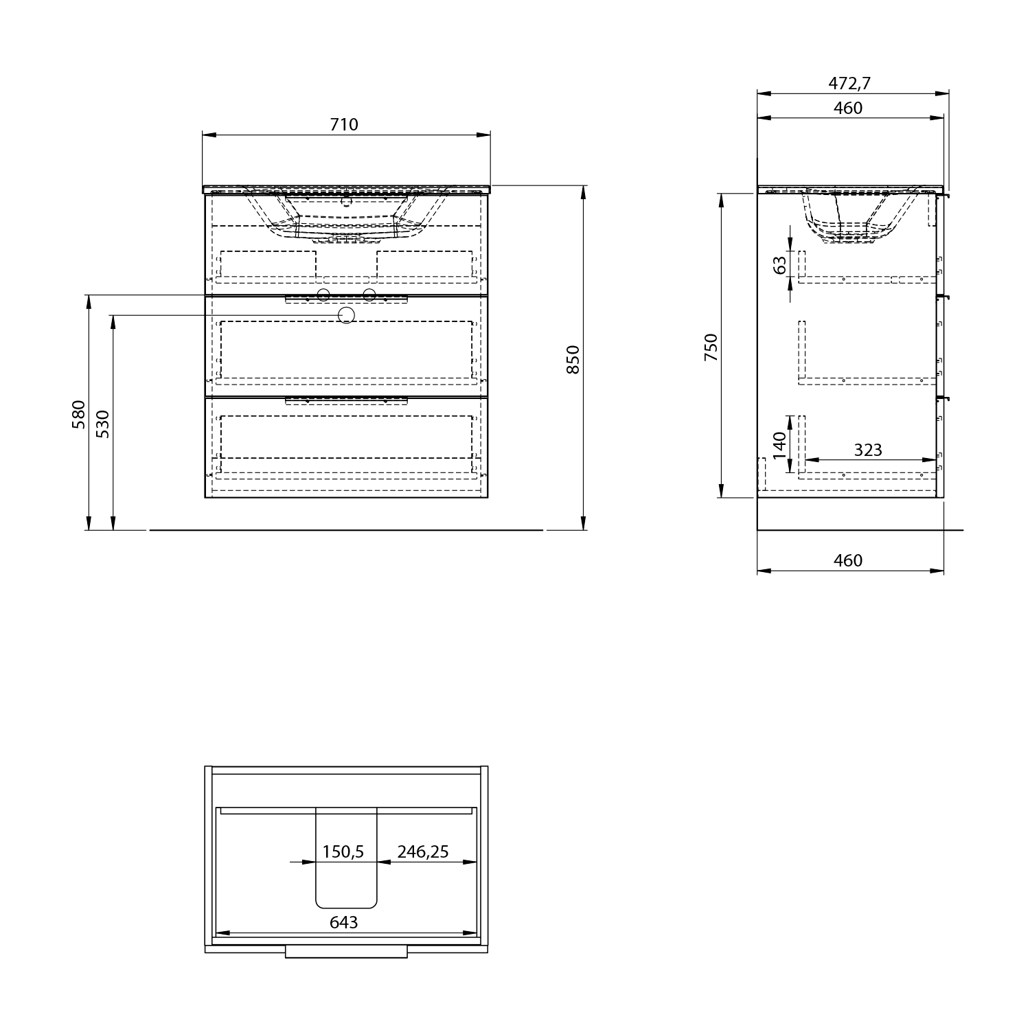 SLIM keramické umyvadlo, nábytkové, 70x46,5cm, bílá 1601-70