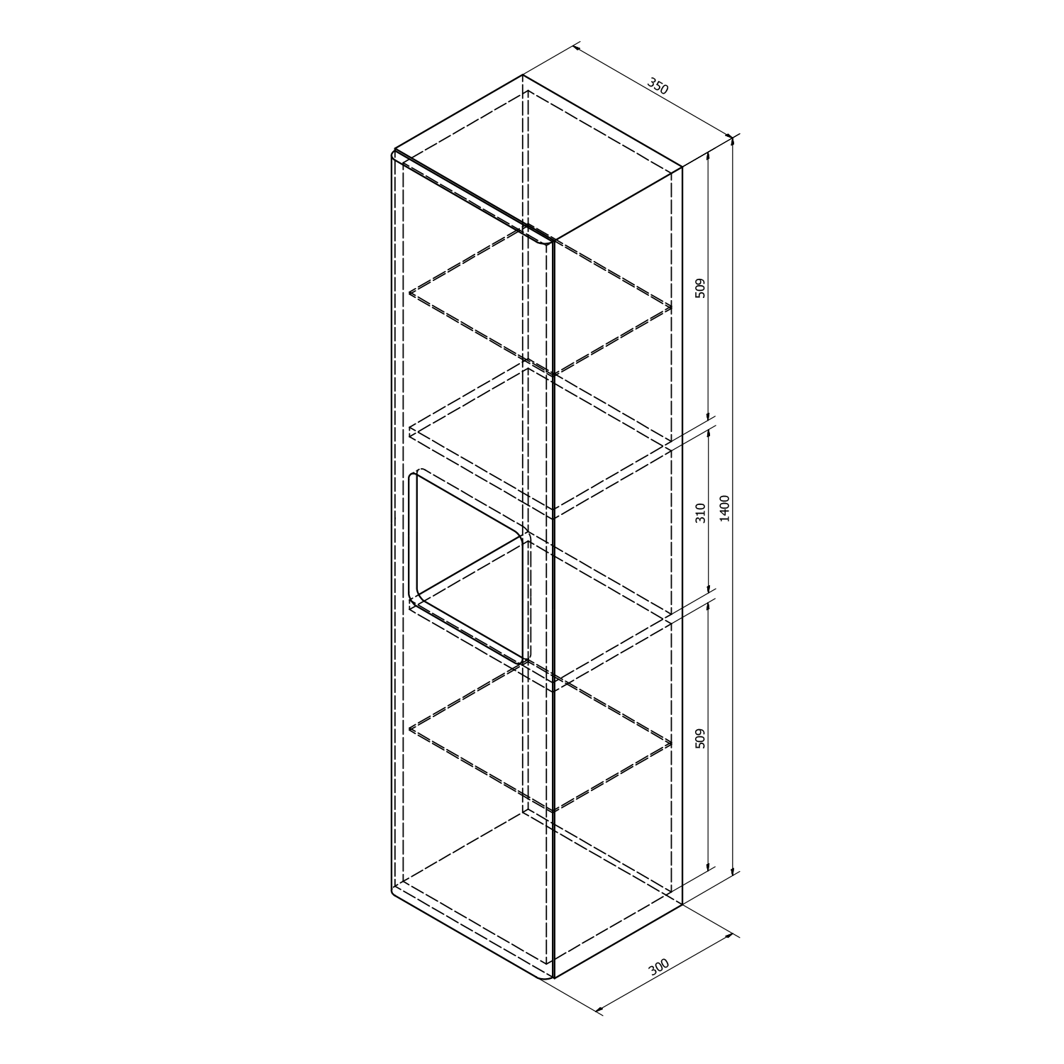 • Uvnitř 2 napevno dané dřevěné a 2 skleněné výškově stavitelné police