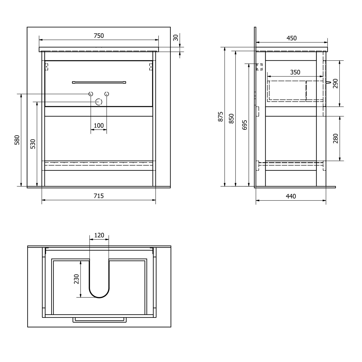 ZUNO 75 keramické umyvadlo nábytkové 75x45cm, bílá 9075