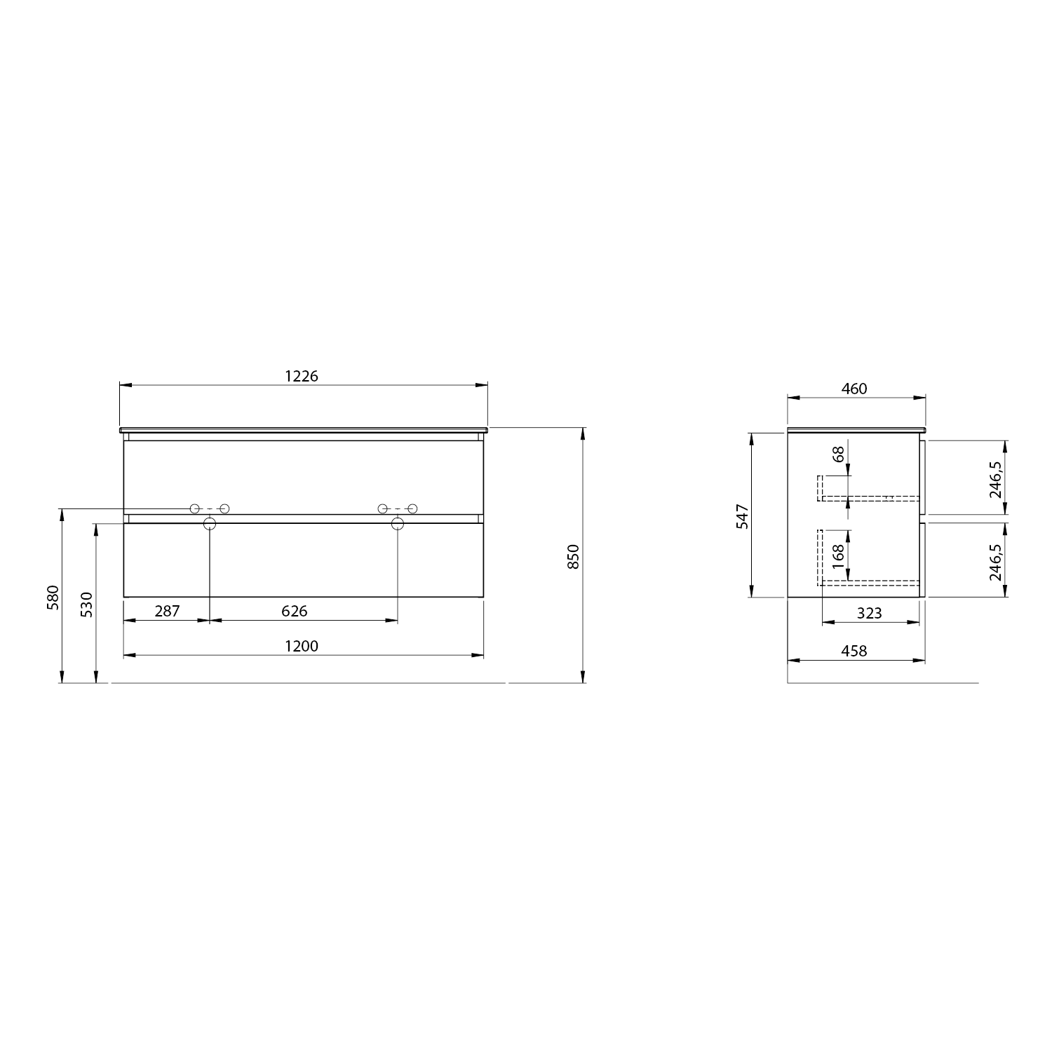 PURA keramické dvojumyvadlo Slim 122x46cm, bílá ExtraGlaze 8888111