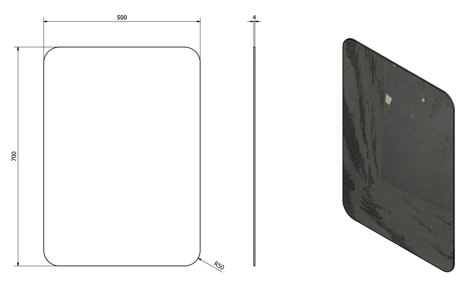 PLAIN zrcadlo s broušenou hranou 50x70cm, zakulacené rohy, CU free 1501-25