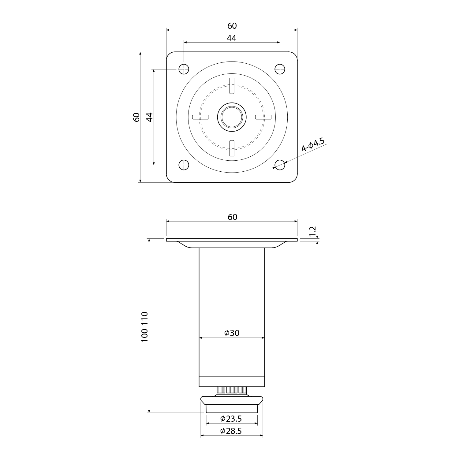 ZOJA výškově stavitelná nožička, výška 100-110mm, chrom 10078