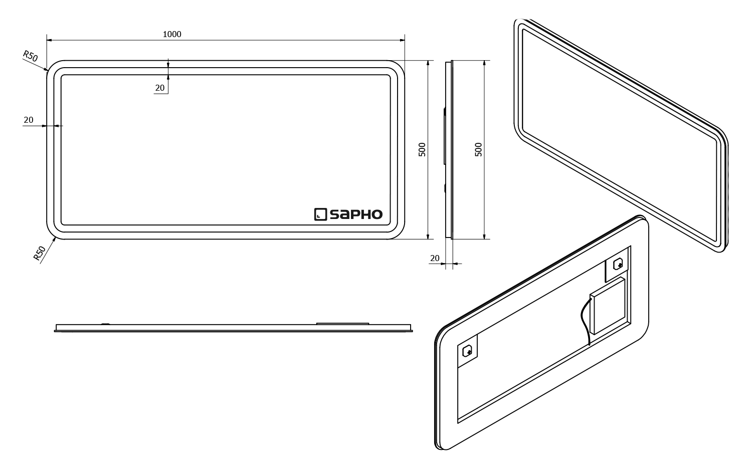 FLUT zrcadlo s LED podsvícením 100x70cm, bílá FT100