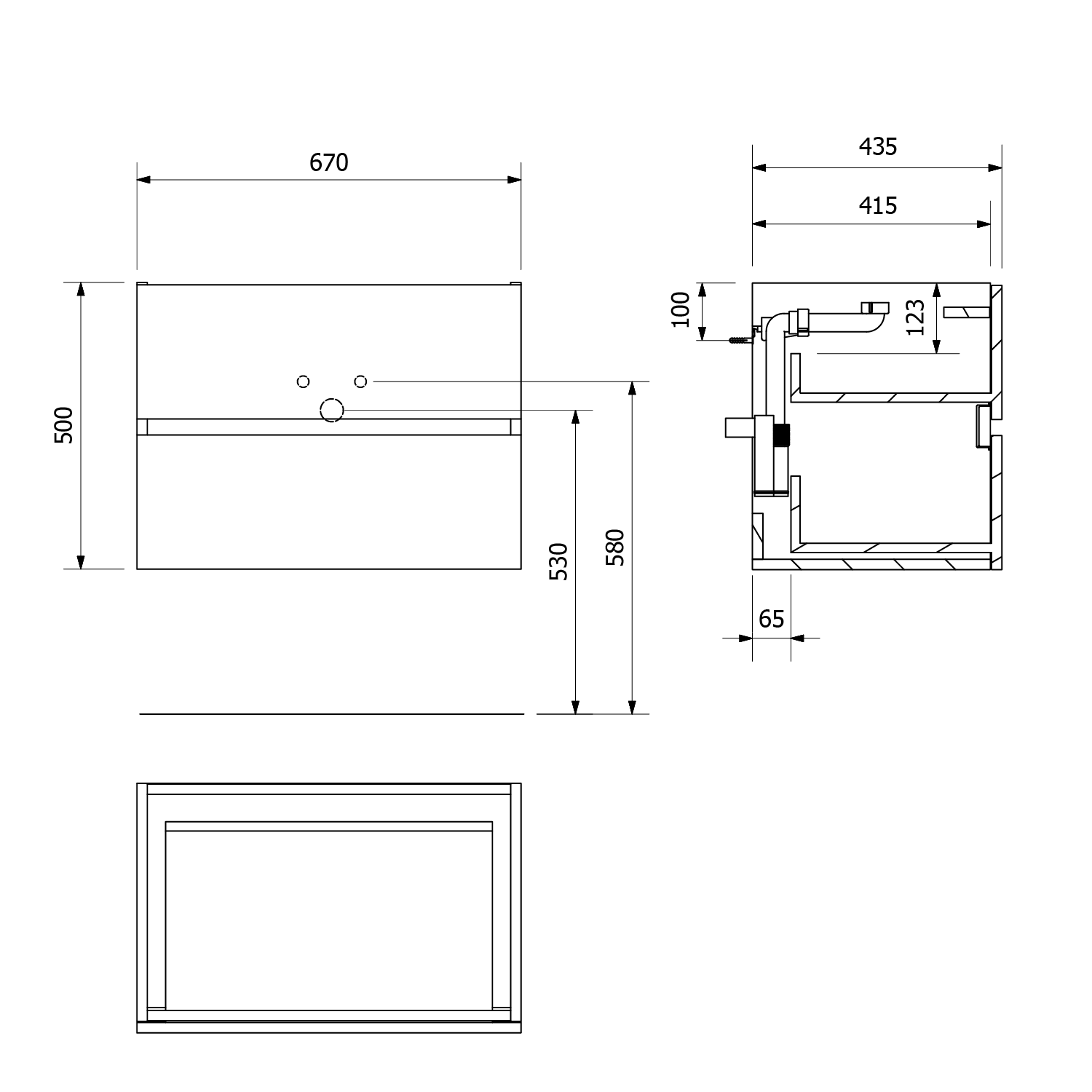 • Při instalaci keramického umyvadla KARE je nutné použít distanční podložky (součástí balení skříňky) a sifon URBINO s Click Clack výpustí (k dokoupení).