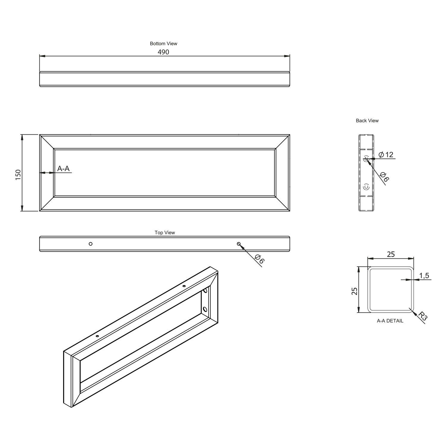 Podpěrná konzole 490x150x30 mm, nerez mat, 1 ks 30384