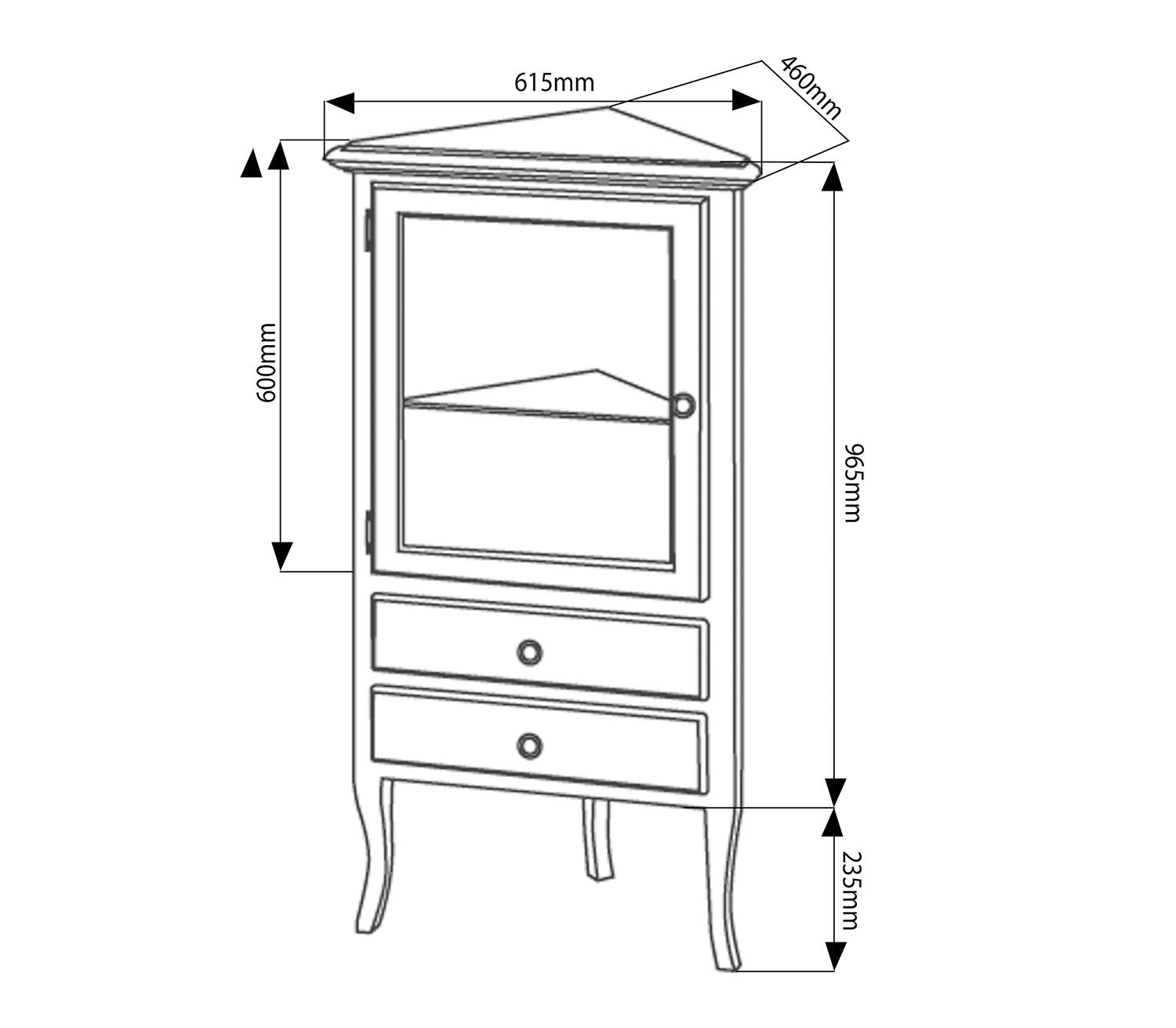 • 1x prosklená dvířka, uvnitř skleněná police