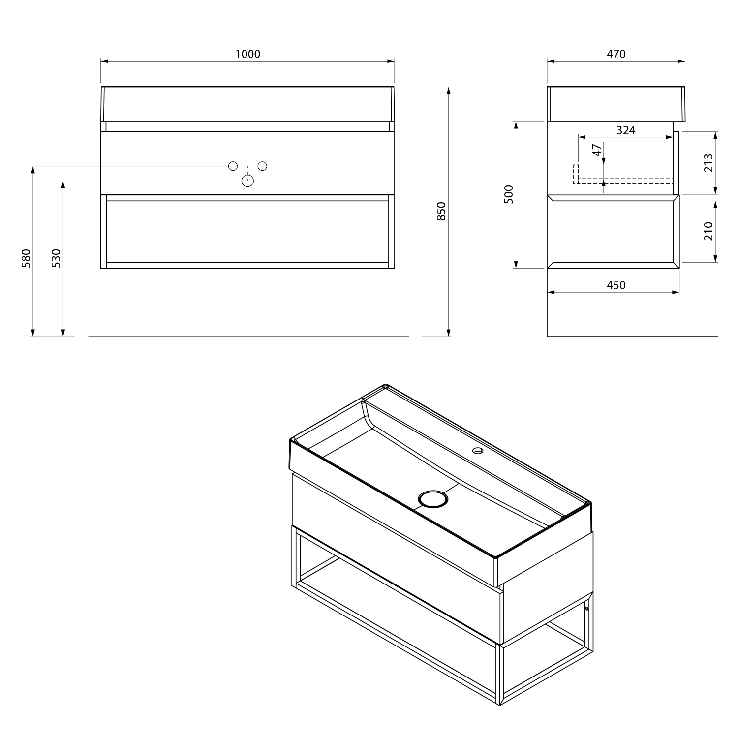 TWIG umyvadlo, litý mramor, 100x47cm, kryt výpusti, bílá TW100