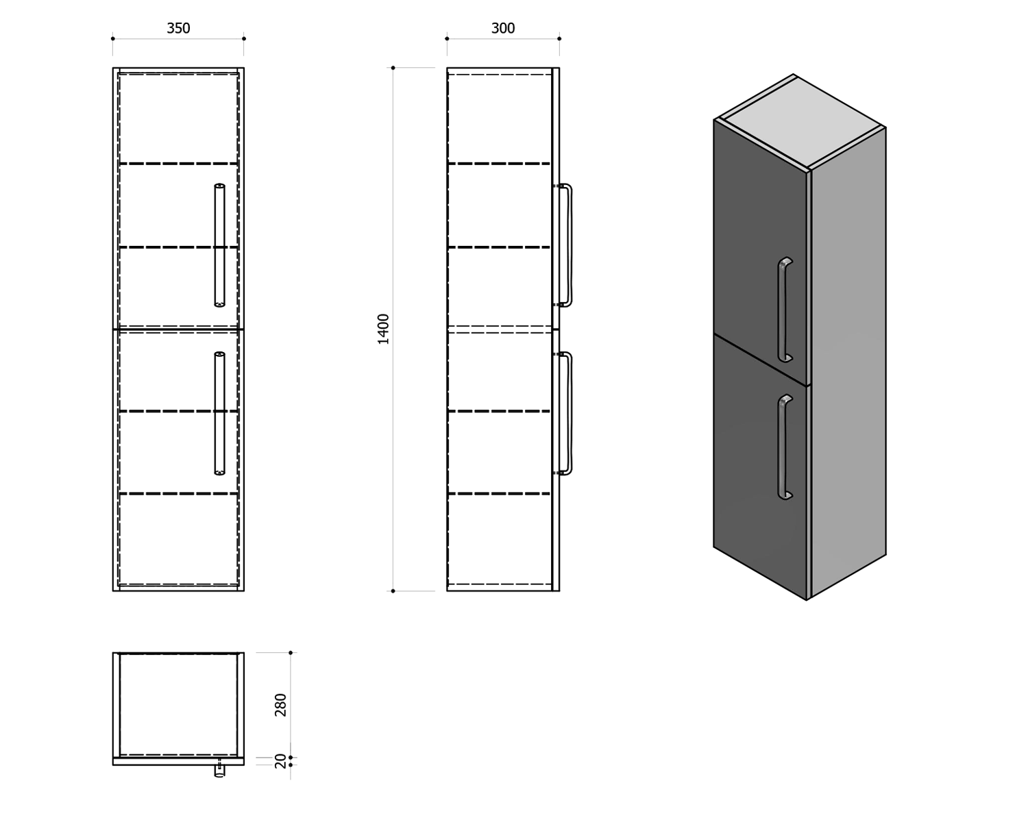 • Standardně dodáváno s úchytkami CT320, rozteč uchycení 320 mm