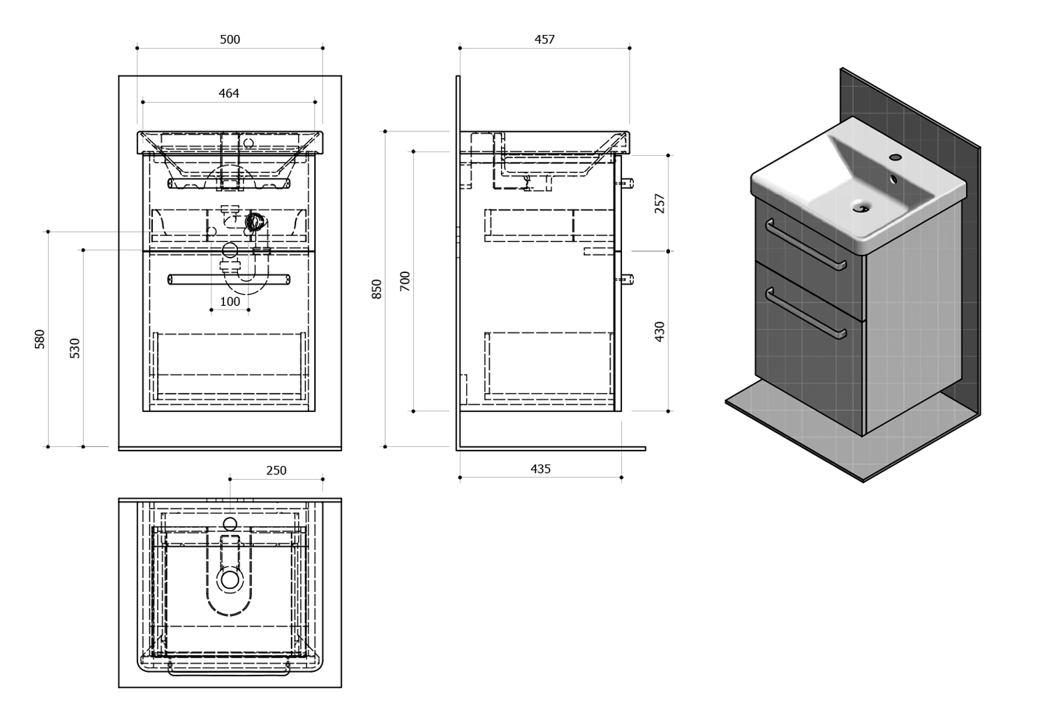• Standardně dodáváno s úchytkami CT320, rozteč uchycení 320 mm.