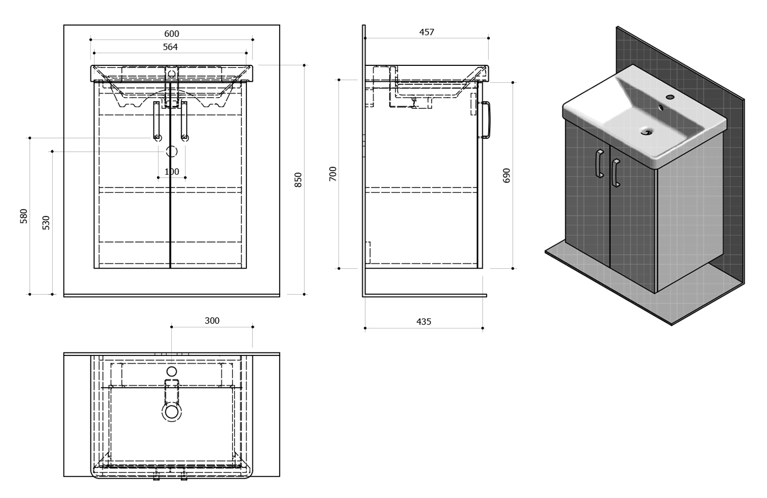 • Standardně dodáváno s úchytkami CT128, rozteč uchycení 128 mm