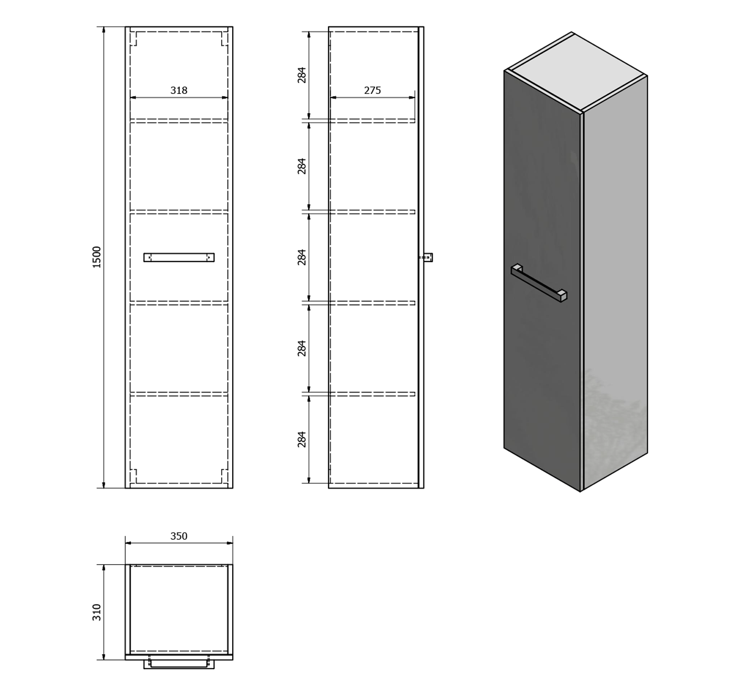 VEGA skříňka vysoká 35x184x31cm, dub platin VG985