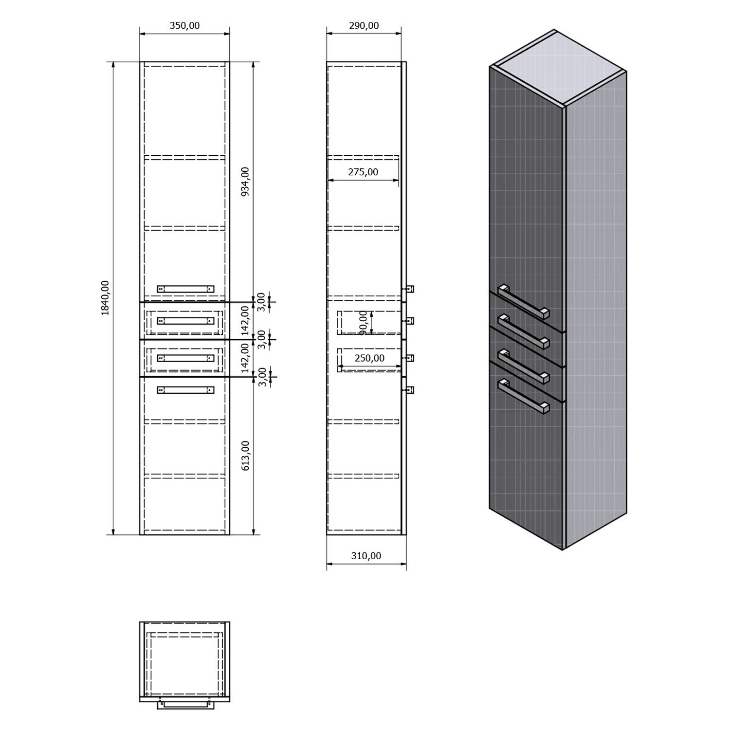 • Skříňka je dodávána s elegantními hranatými úchytkami v chromovém provedení