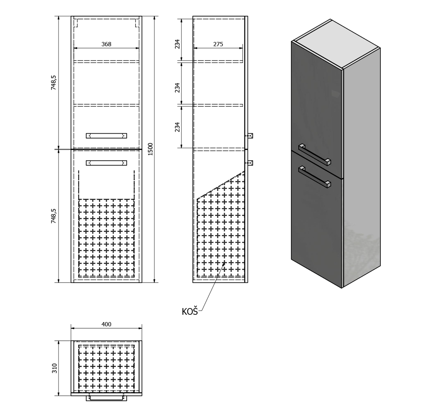 VEGA skříňka vysoká s košem, 40x184x31cm, bílá VG180