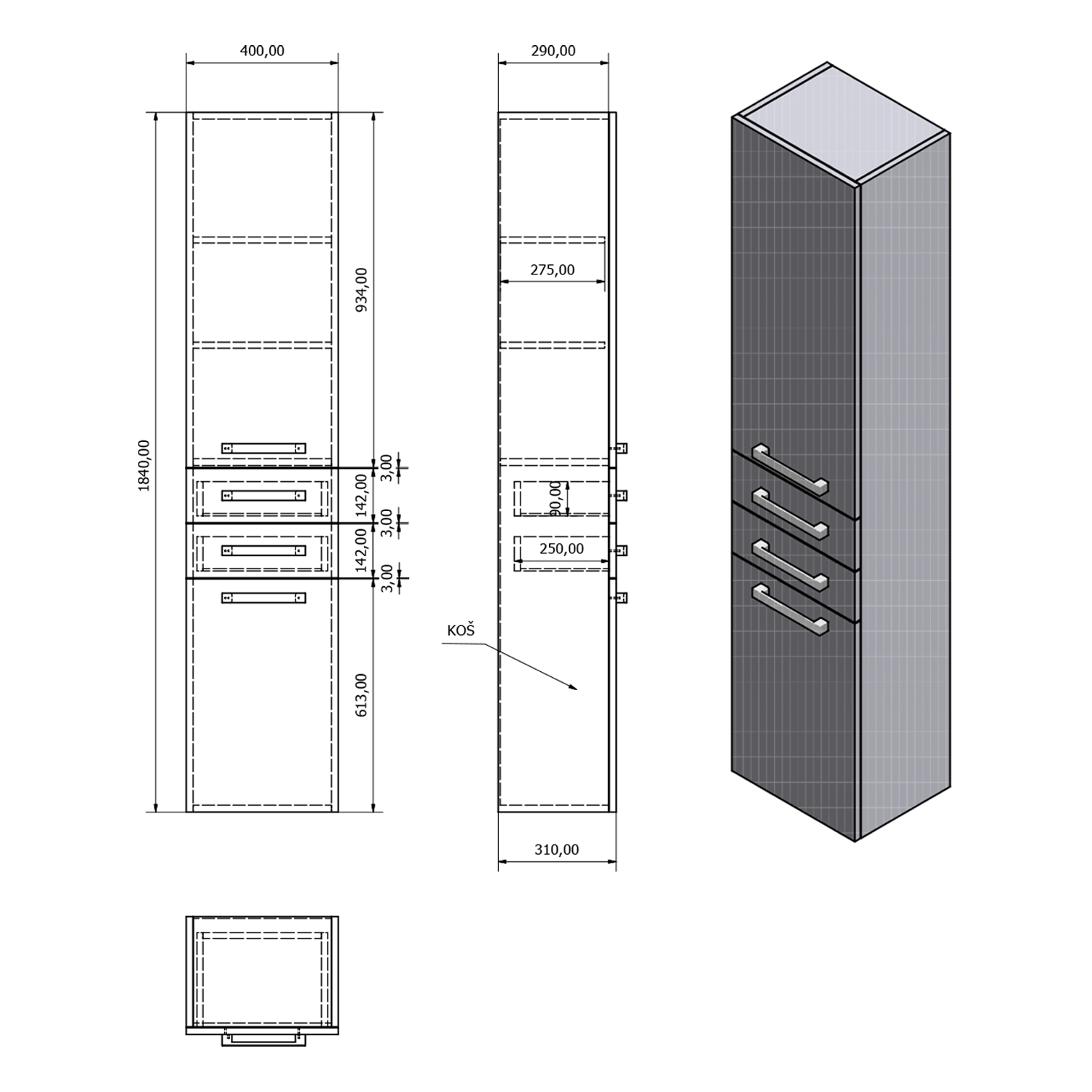 Nábytek je dodáván ve smontovaném stavu, připraven k okamžité instalaci.