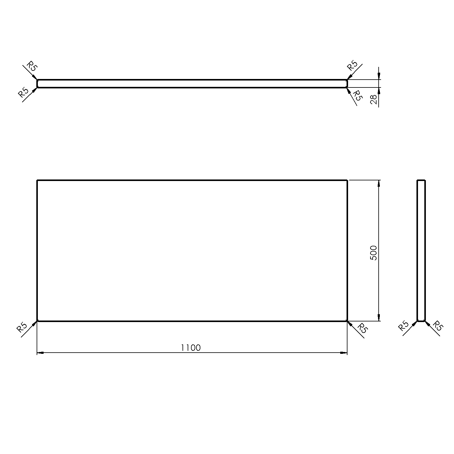 Podpěrná konzole 490x150x20mm, lakovaná ocel, černá mat, 1 ks 30360