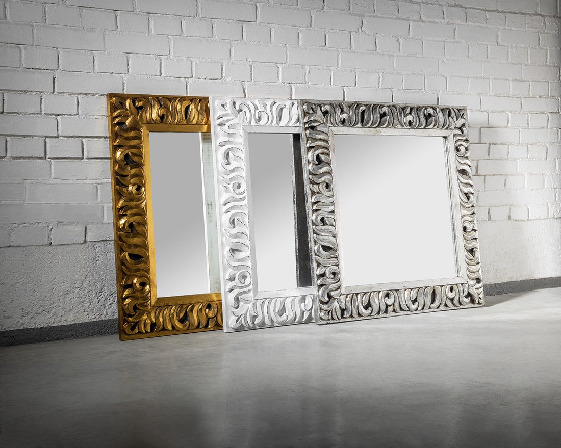 Zrcadlo v ručně vyřezávaném dřevěném rámu