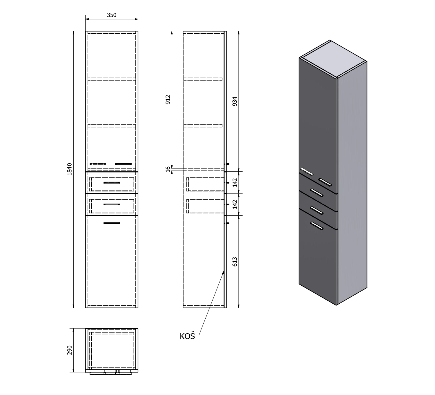 • Skříňka je standardně dodávána se 2 druhy úchytek – hranaté (Zoja) a kulaté (Keramia Fresh), aby ji bylo možno kombinovat s dalšími skříňkami Zoja i Keramia Fresh