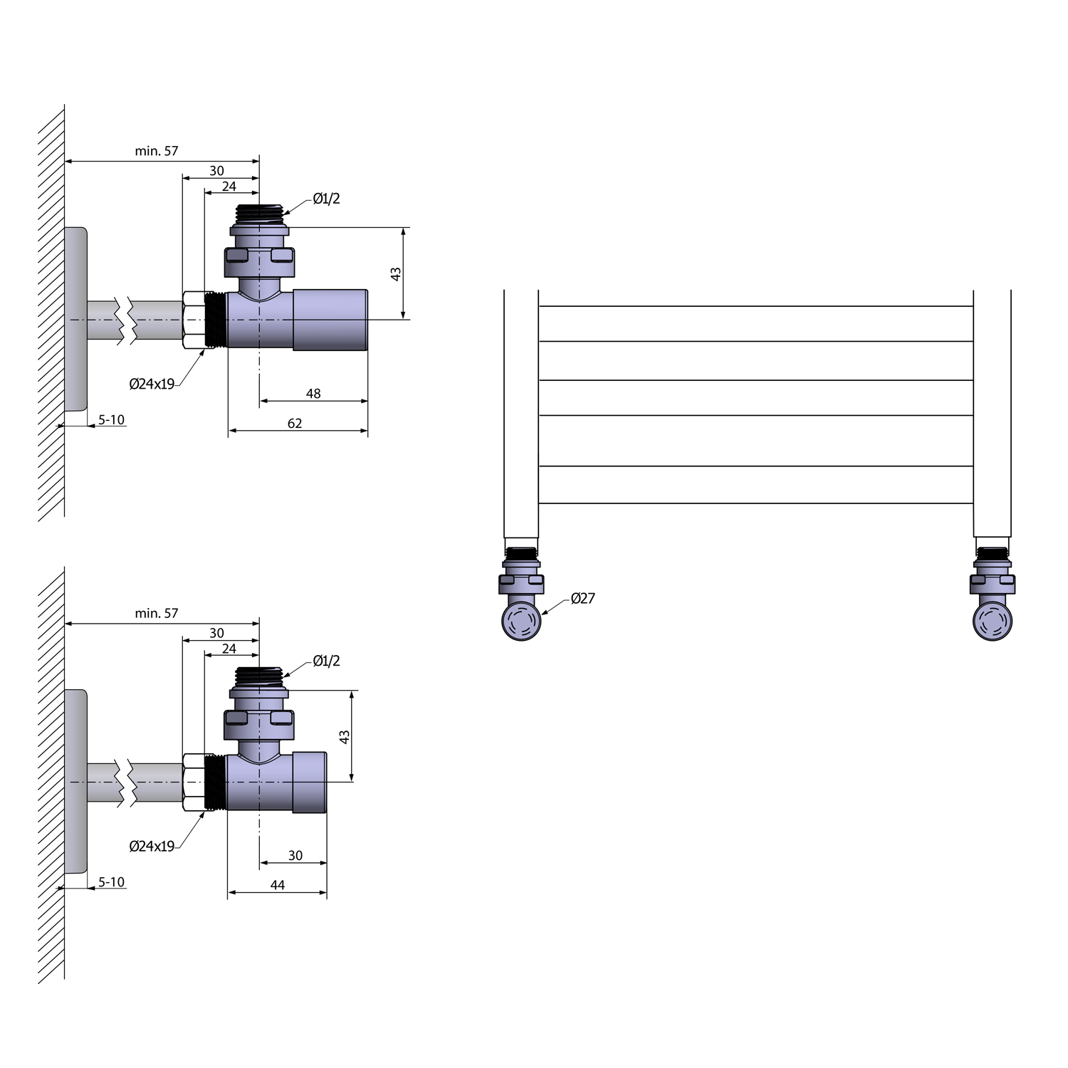 CUBE připojovací sada ventilů ruční rohová, nerez mat CP4510S