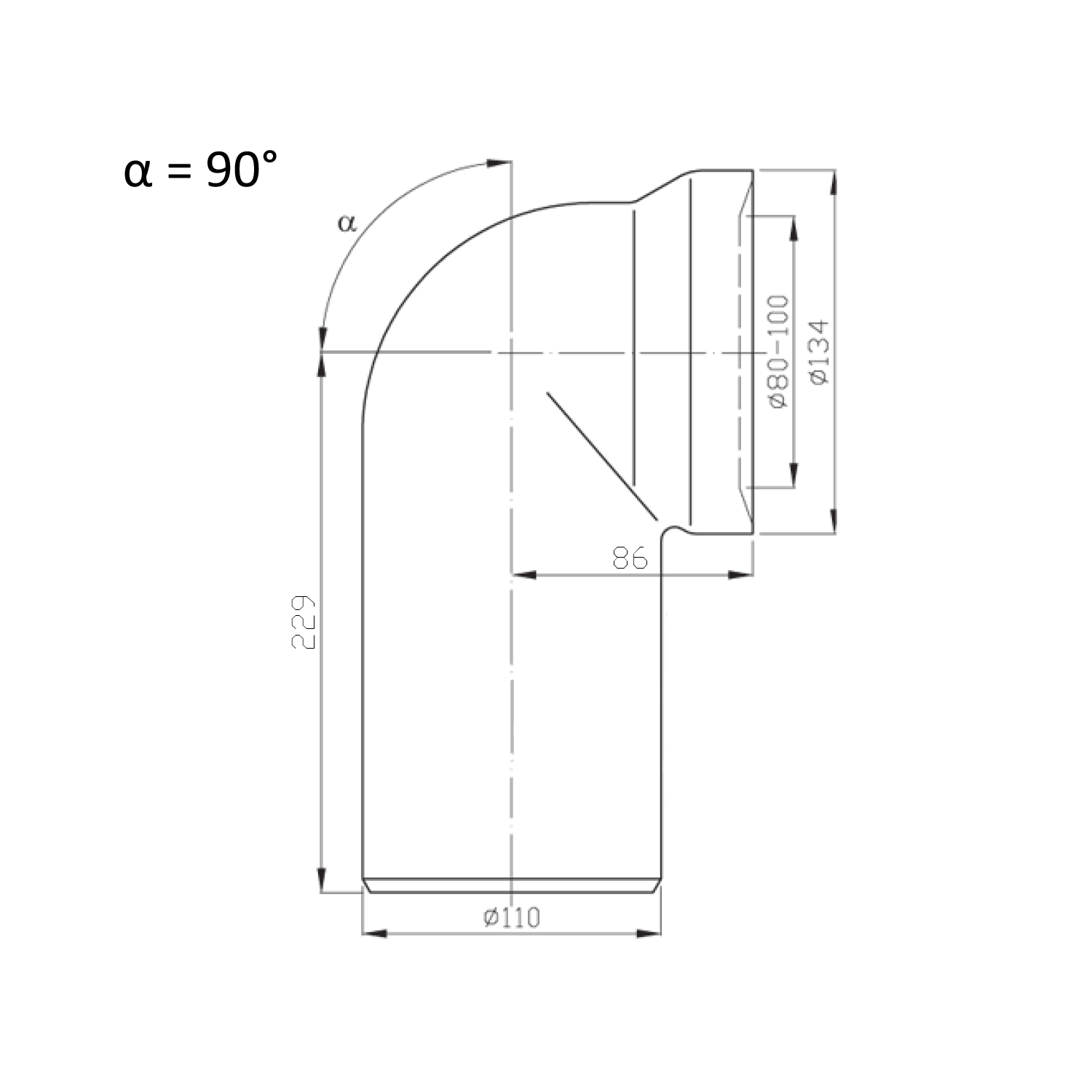Koleno 90 dopojení k WC, Offset, 110 mm