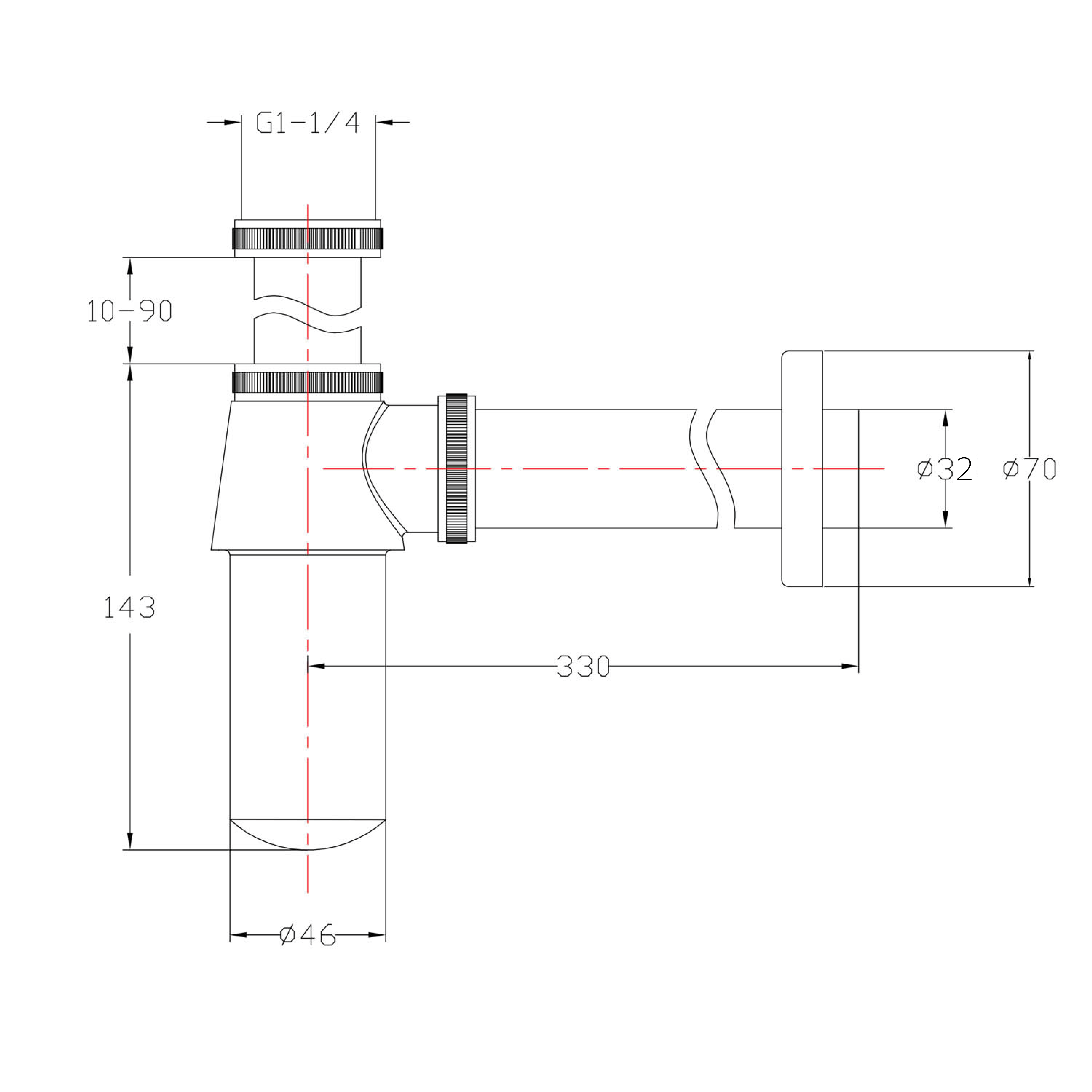 Prodloužená trubka sifonu s přírubou, 32/250mm, tmavý bronz 9696-01