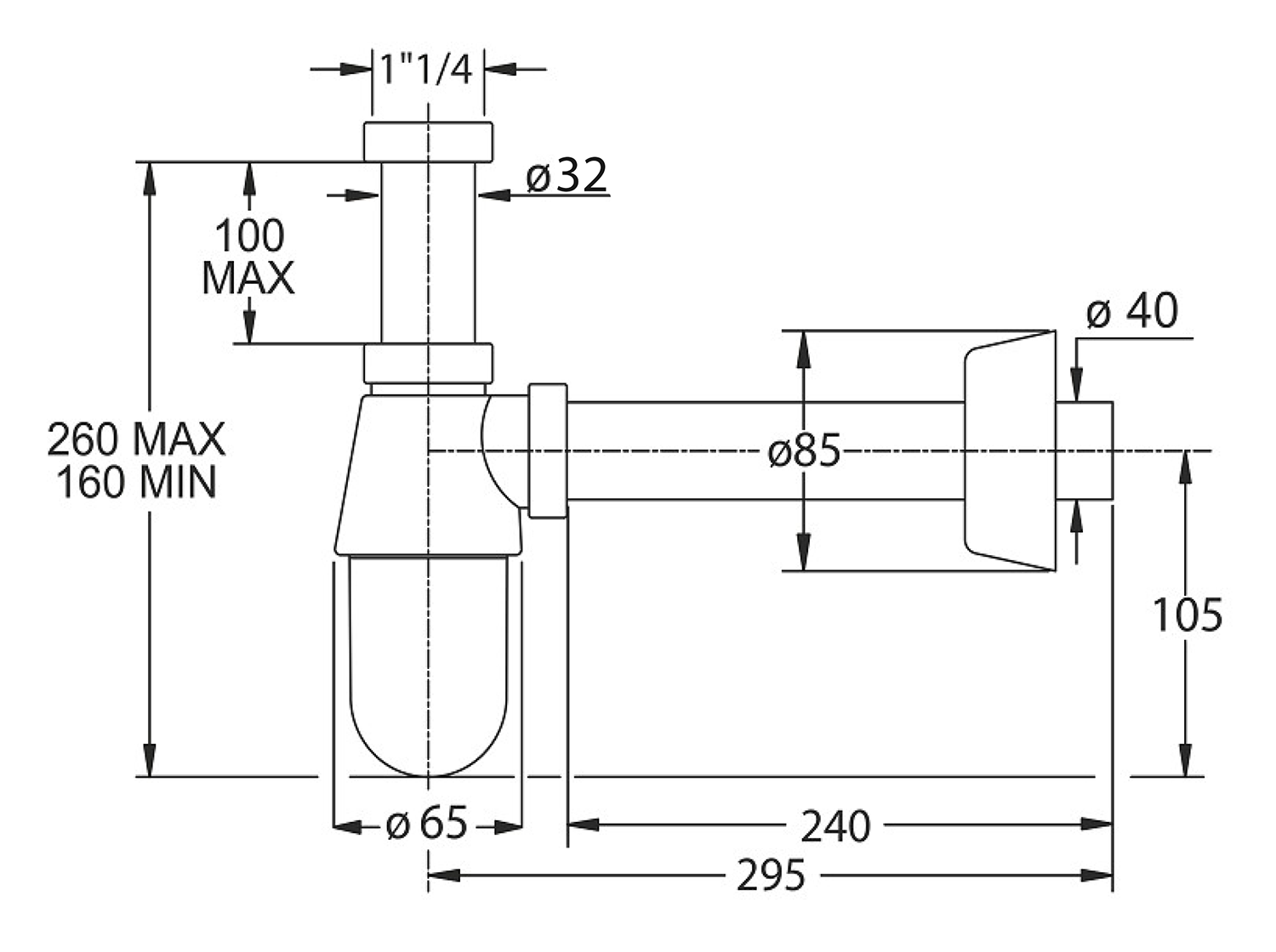 Prodloužená trubka sifonu s přírubou, 32/250mm, chrom 0632CC25B7