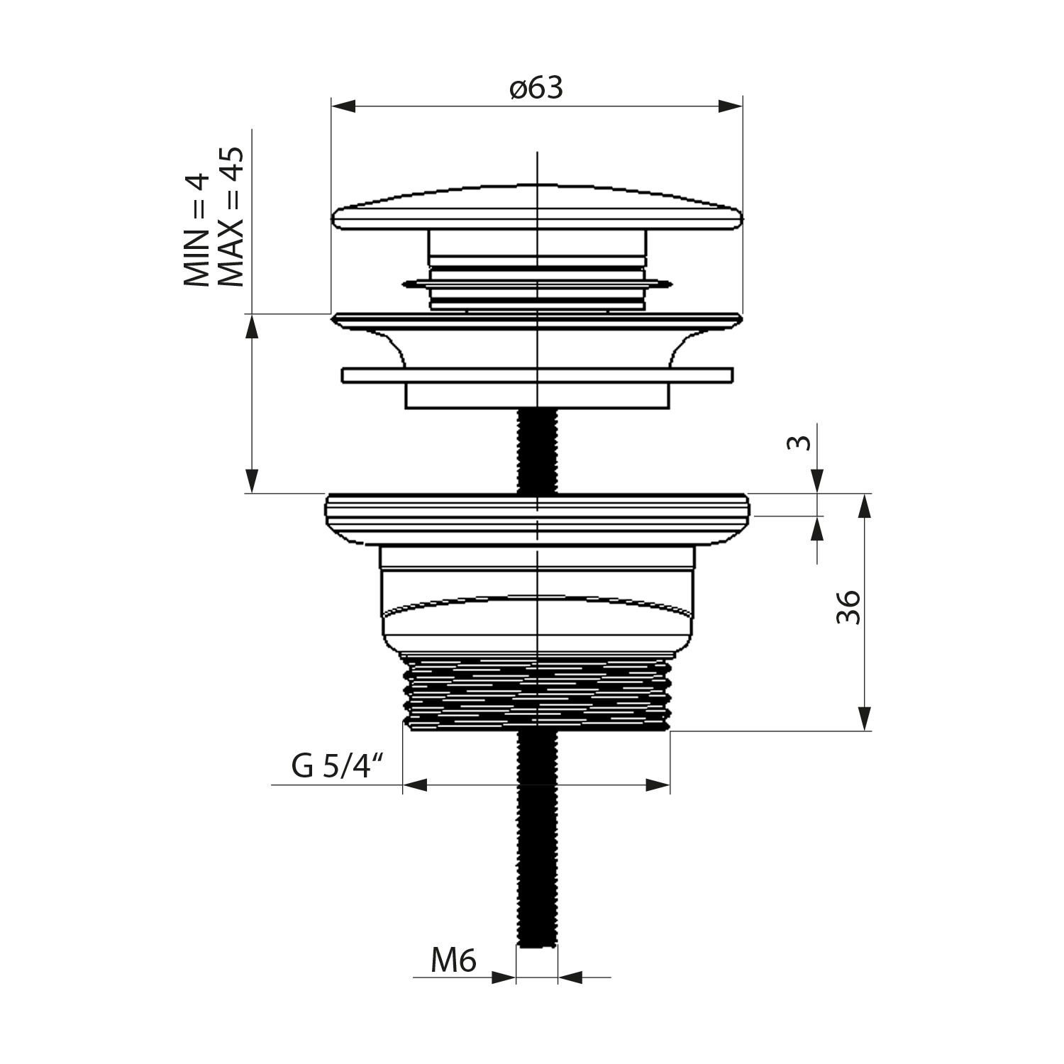 Umyvadlová výpust 5/4“, click-clack, velká zátka, 10-55mm, chrom 151.307.1
