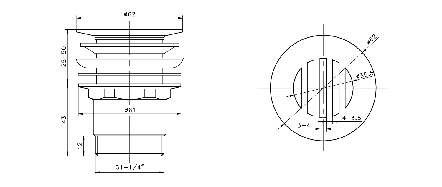 Umyvadlová výpust 5/4“, neuzavíratelná, design zátka, 30-45mm, chrom 147.545.5