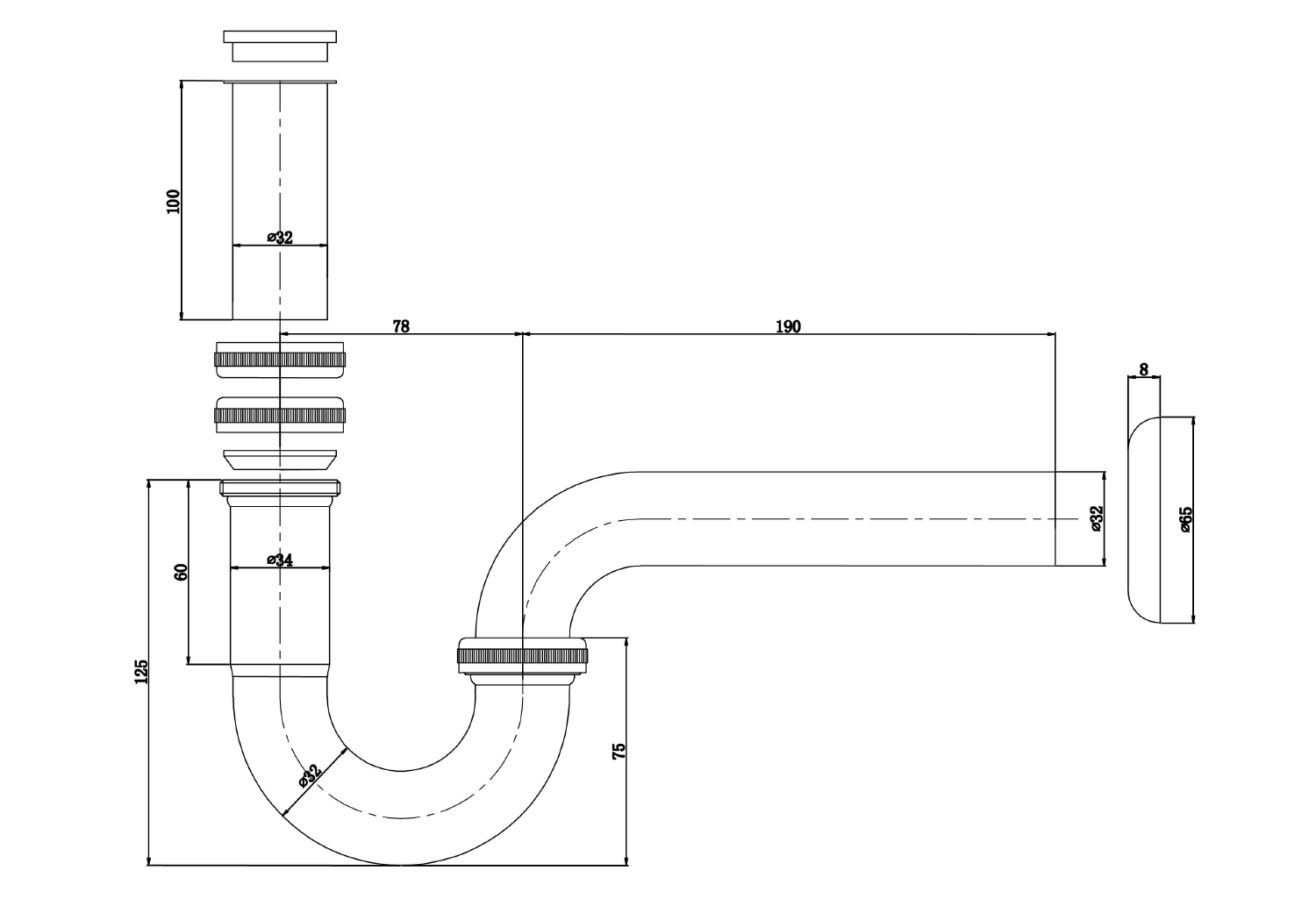 Umyvadlový sifon 5/4", odpad 32mm kulatý, chrom