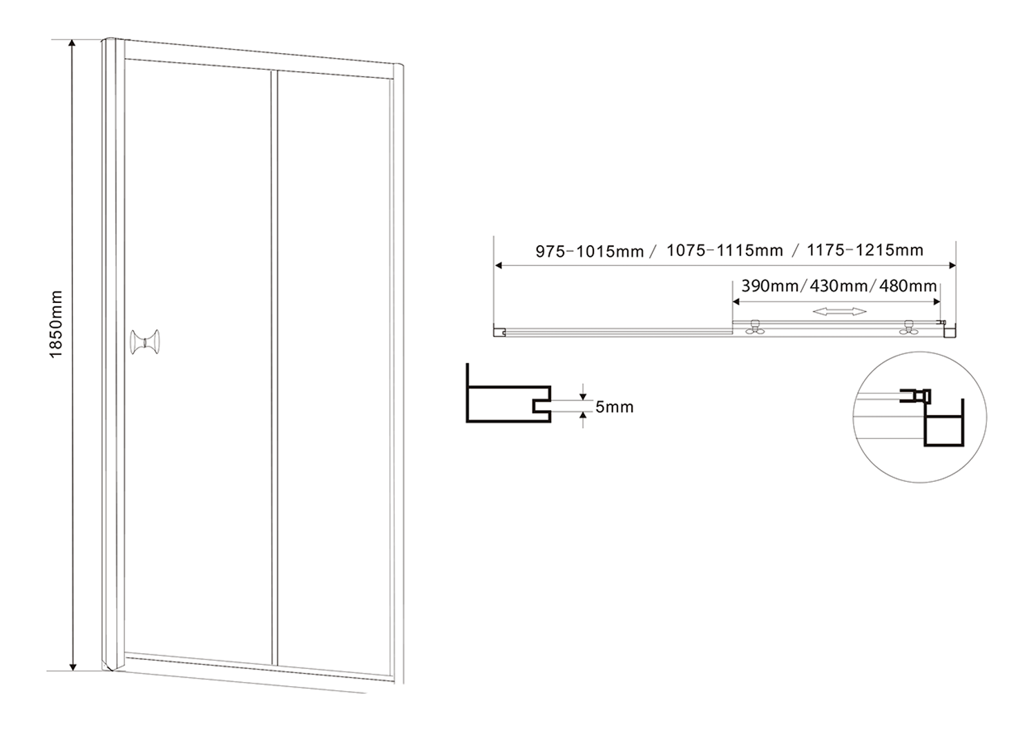 AMADEO boční stěna 900 mm, sklo Brick