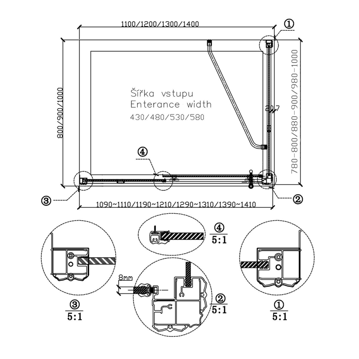 Pro instalaci boční stěny s otočnými dveřmi Antique je nutno použít vzpěru GQV320.