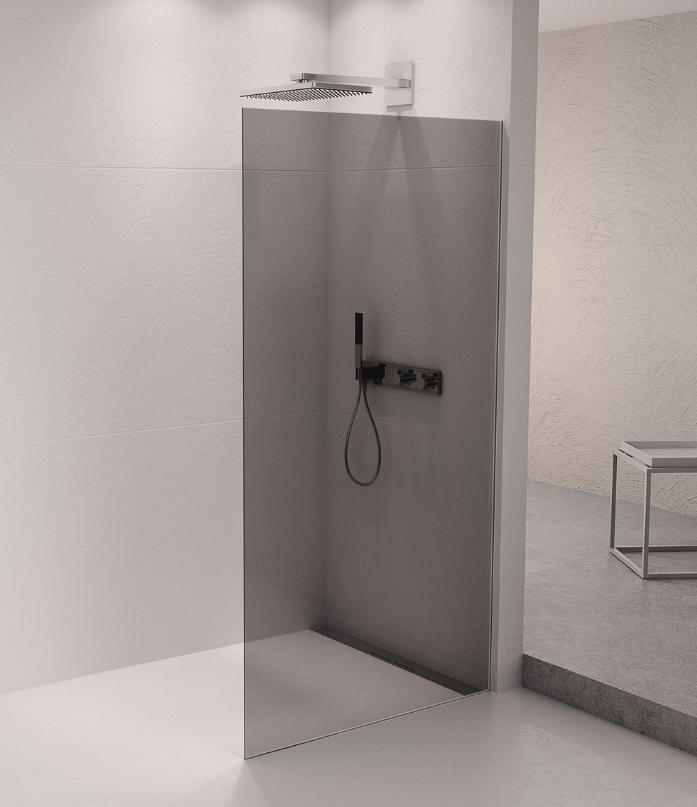 ARCHITEX  jsou elegantní walk-in sprchové zástěny bez rušivých kotvících profilů. Neviditelné uchycení skleněné zástěny umožňují profily zasazené pod keramický obklad. Skleněná tabule se usazuje až po finálním vyspárovaní keramického obkladu.
