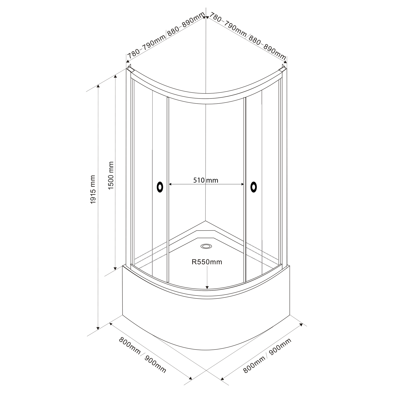 ARLEN sprchový kout určený, díky své snížené výšce 150 cm a standardnímu poloměru zakřivení (550 mm), k osazení na vysoké sedací vaničky (minivany).