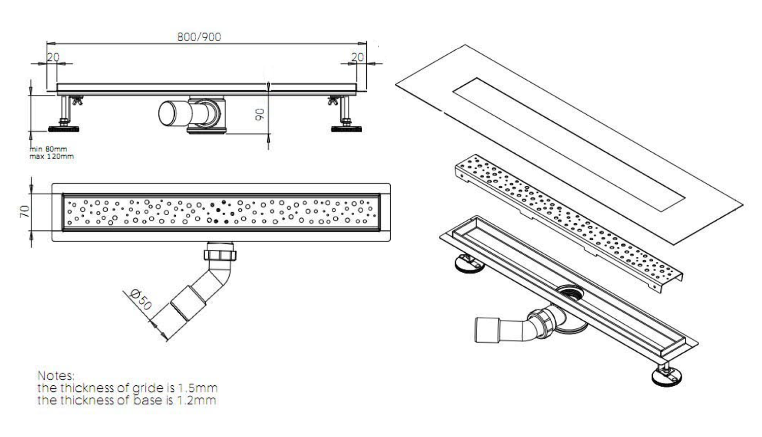 • Redukce DN40/DN50 pro napojení odpadního potrubí je součástí balení.