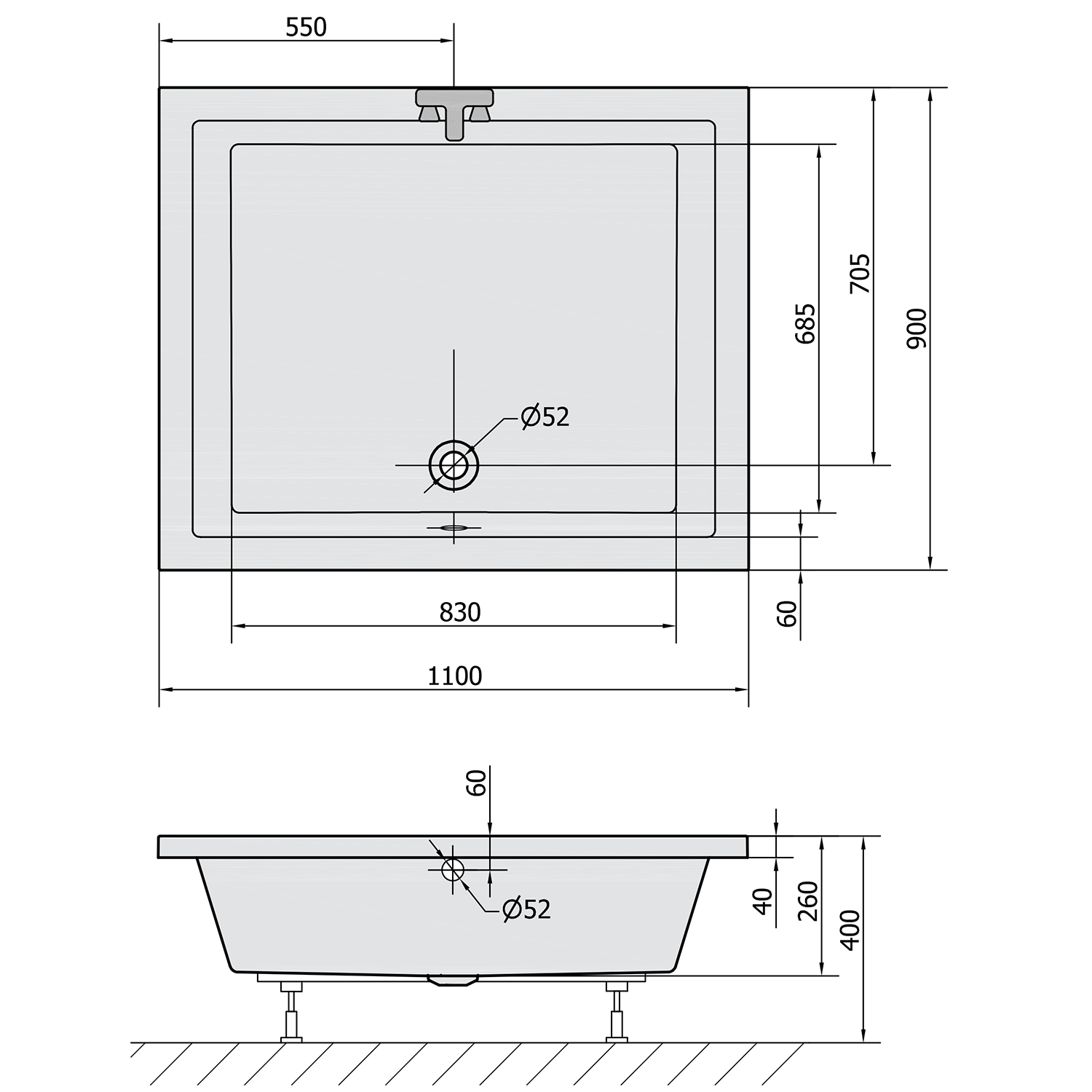 Nosná konstrukce pro hlubokou vaničku DEEP 110x90cm FR2235
